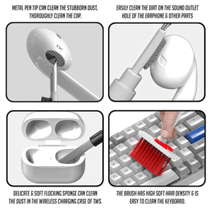 • Cleaning Pen for Crevices: Fine-tip pen helps clean hard-to-reach areas like earphone mesh, charging ports, and small crevices.